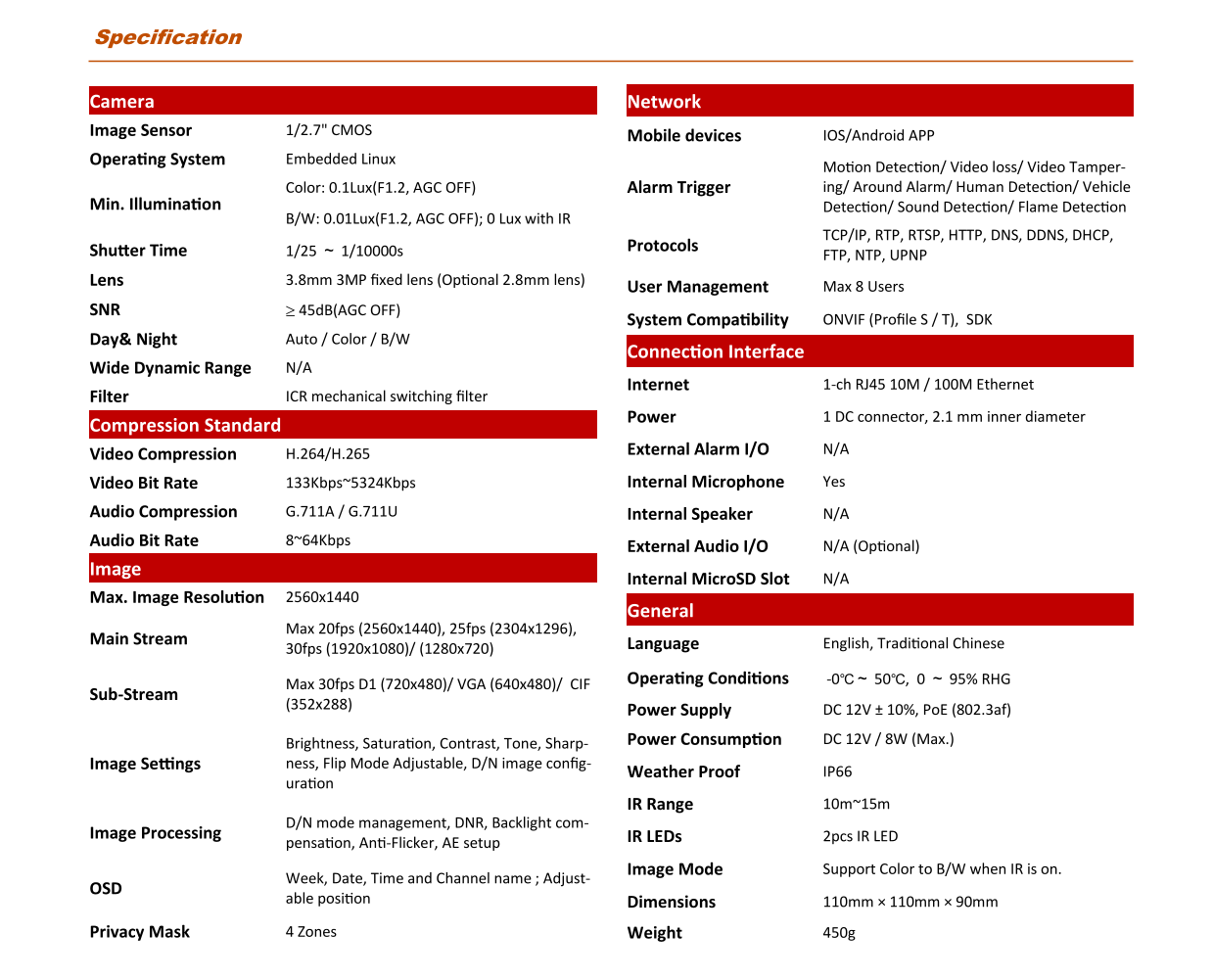 ◆ Maximum resolution of 2560*1440 @ 20fps
