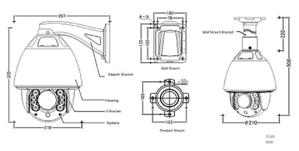 * 手動旋轉速度: 水平: 0.01°/s - 350°/s, 垂直: 0.01°/s -