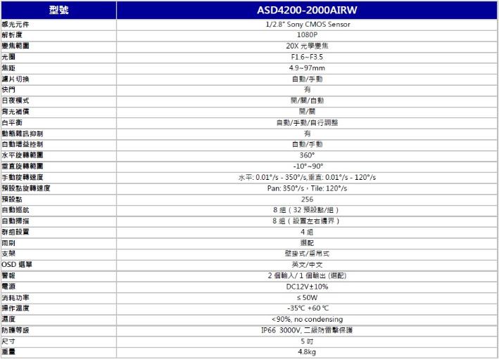 * 預設點旋轉速度: Pan: 350°/s, Tile: 120°/s