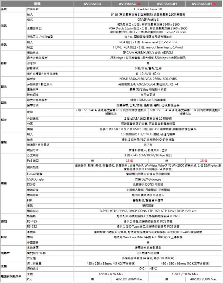 * H.265壓縮格式,64 路即時錄影